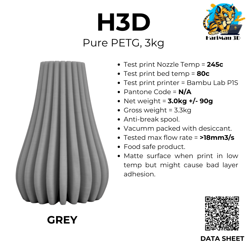 PETG Filamen (PETG Filament) Harimau3D 1KG 1.75mm | Tahan Lasak (Durable) | Kurang Lengkung (Low Warp) | Stok Malaysia